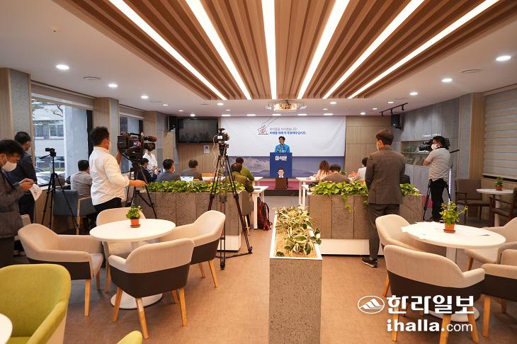 이석문(63) 제주도교육감 후보는 30일 제주도의회 도민카페에서 기자회견을 열고 "코로나19를 넘어 아이들의 손을 잡고 미래로 갈 수 있는 기회를 주기를 간곡히 호소드린다"며 "아이들을 위해, 미래를 위해 꼭 투표하기를 부탁 드린다"고 밝혔다.