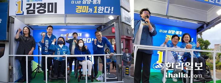삼양동·봉개동 선거구에 출마한 김경미 후보의 최근 집중 유세 장면. 사진=선거사무소 제공