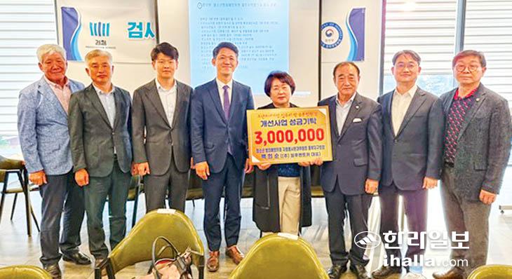 법무부 청소년범죄예방위원 제주지역협의회 자원봉사분과 동부지구 백희순 회장은 지난 25일 제주시 노팅힐웨딩컨벤션에서 ‘소년소녀가장 사랑의 집수리 및 공부방 환경 개선사업’을 위해 써달라며 300만원을 기부했다.