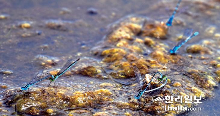 30일 대한민국 국토 최남단 마라도 연못에서 실잠자리들이 짝짓기를 하고있다. 강희만기자
