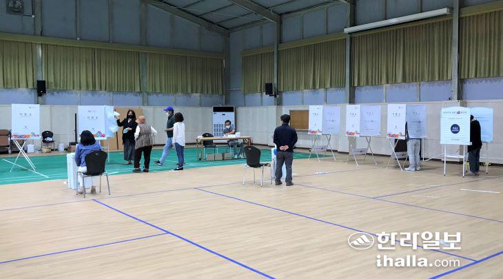 1일 선흘체육관에 설치된 조천읍 제4투표소에서 차분한 분위기 속 투표가 진행되고 있다. 김도영기자