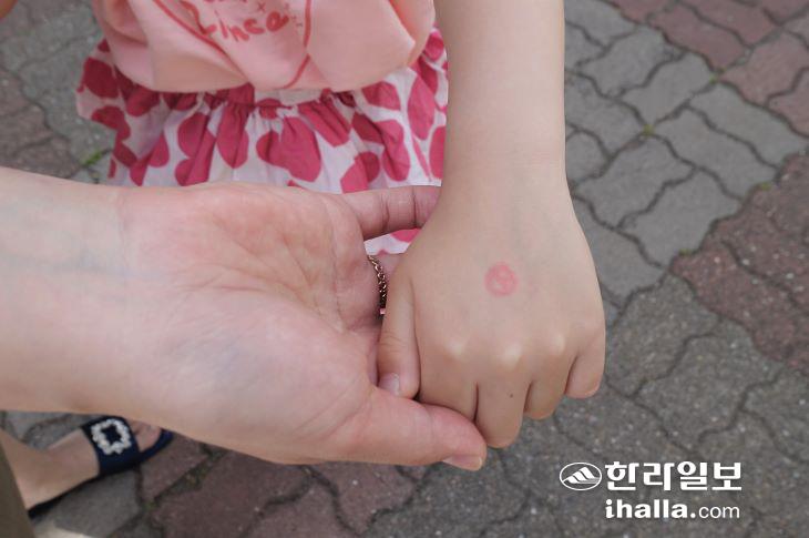엄마를 따라 생애 처음으로 투표소를 찾은 6살 문지원 양이 손등에 찍은 도장을 보여주고 있다. 김도영기자