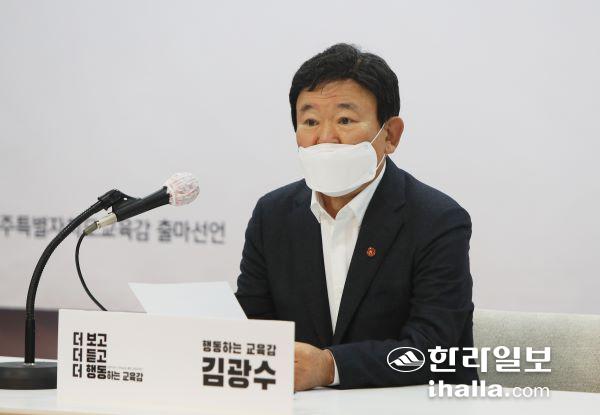 제8회 동시지방선거 제주교육감선거에서 김광수 후보의 당선이 유력하다는 예측이 나왔다.