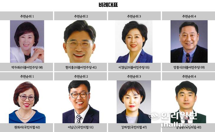 ▶더불어민주당=박두화, 현지홍, 이경심,양홍식 ▶국민의힘=원화자, 이남근, 강하영, 강경문