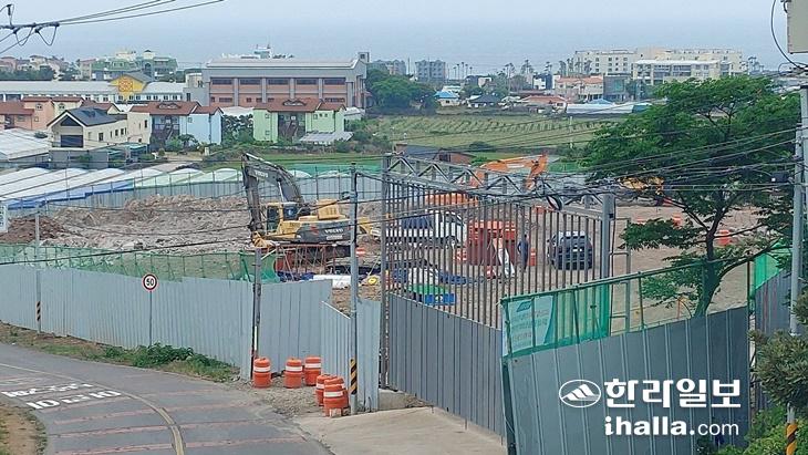 제주시 애월읍 수산리 공동주택 공사 현장. 주변 어린이집 등 지역민들이 소음과 먼지 피해 등을 호소하고 있다. 진선희기자