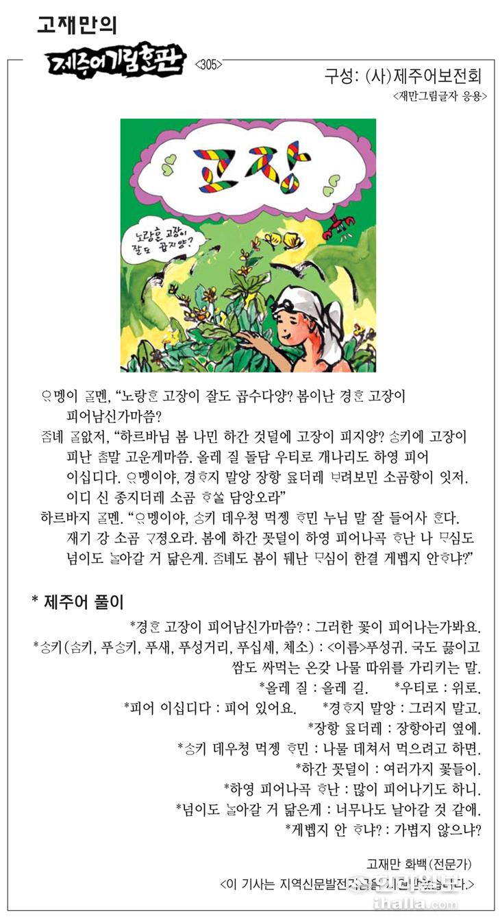 [고재만의 제주어기림혼판] 제주어 풀이(305)