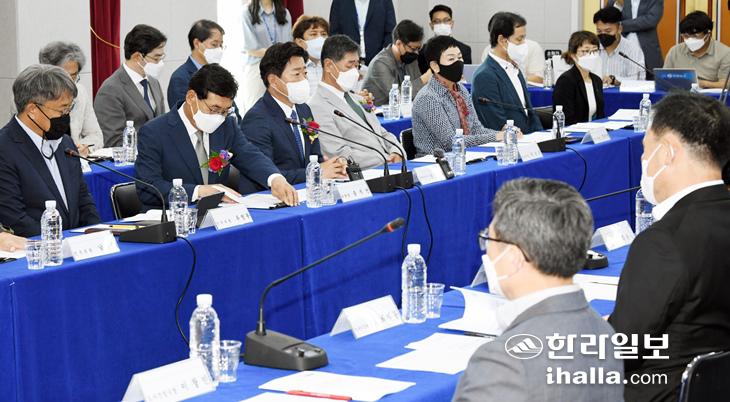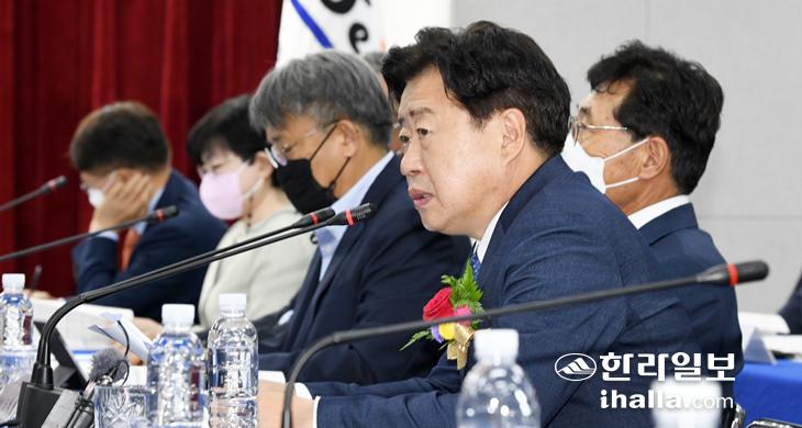 오 당선인은 업무보고에 이어 진행된 토론회에서 "제주 등록 인구는 69만여명 인데 한달살이 열풍 등으로 제주 체류 인구는 이미 80만명을 넘어섰다"면서 "여기에 워케이션 열풍까지 감안하면 100만명 시대가 금방이다. 안전 분야 등 모든 분야에서 지방비를 절약 할 수 있는 대책 방안을 마련해달라"고 당부했다.