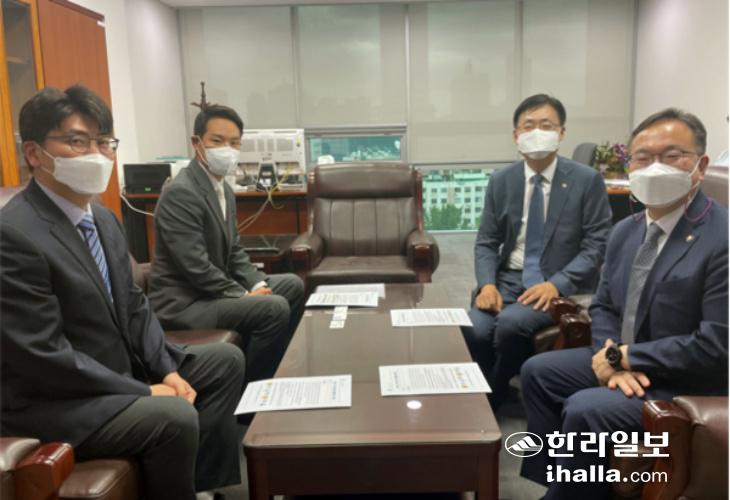김한규 국회의원(제주시을, 사진 왼쪽에서 두번째)은 14일 오후 법원행정처 차장을 만나 제주 4·3 희생자와 유족들의 명예 회복을 위한 논의를 진행했다.