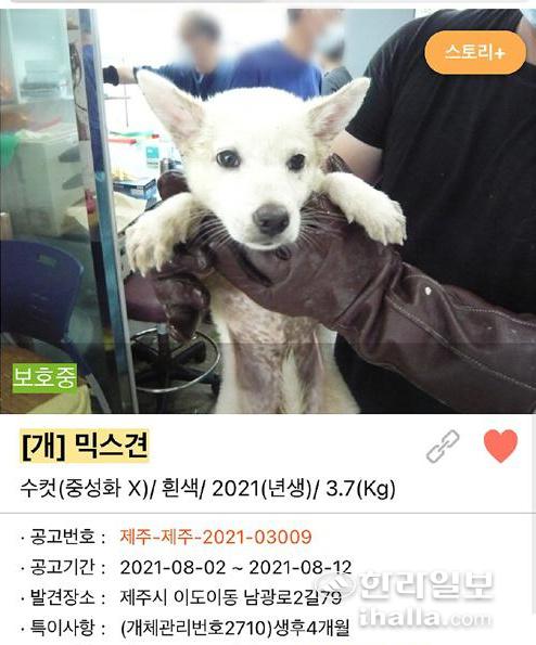 지난해 8월 제주도 동물보호센터 입소 당시 공고. 사진=제제프렌즈