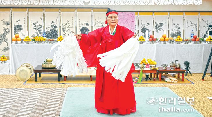 제주큰굿 삼시왕맞이가 개최된 지난 18일 제주시무형문화재전수관에서 초감제가 진행되고 있다. 이상국기자