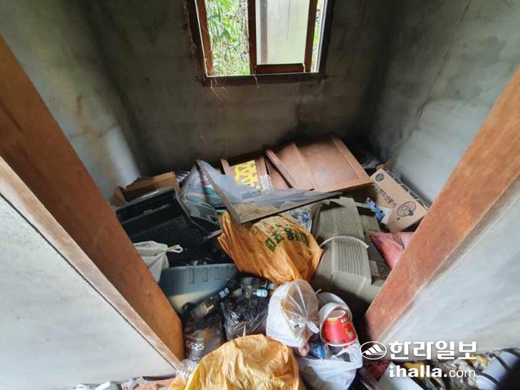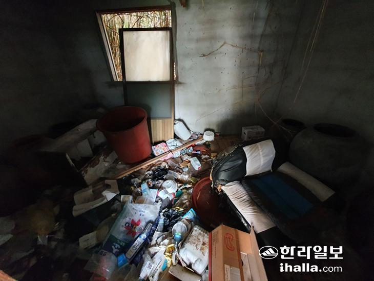 A씨 부부가 살고 있던 폐가. 각종 생활쓰레기가 가득 쌓여 있다.