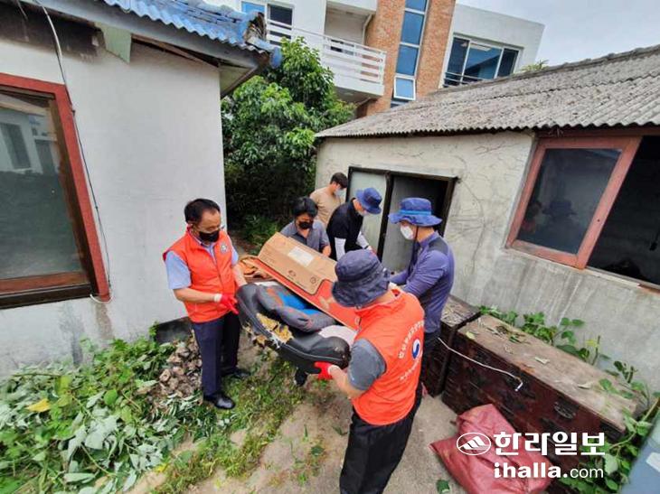 20일 제주보호관찰소와 제주보호관찰협의회 제주시서부지구(회장 이병철) 관계자 10명은 제주시 애월읍의 한 폐가에서 주거환경개선을 실시하고 있다.