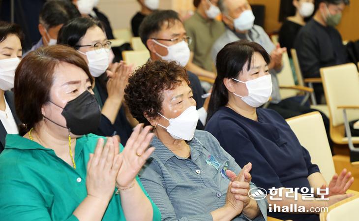 유족들이 무죄 선고를 듣고 박수를 치고 있다. 제주지방법원 출입 기자단.
