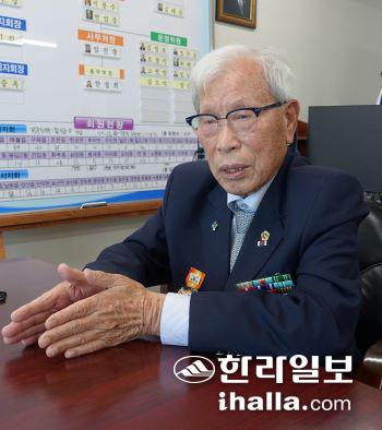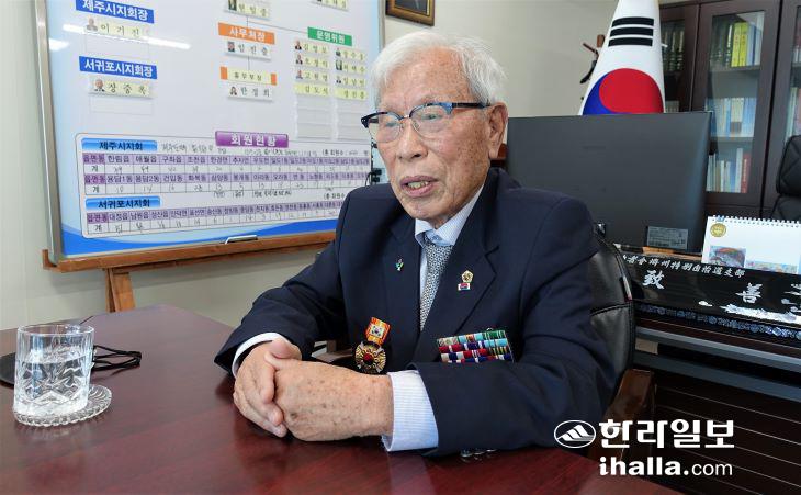 대한민국 6·25 참전 유공자회 제주특별자치도지부 송치선(93) 지부장이 담담하지만 힘 있는 어조로 말했다.