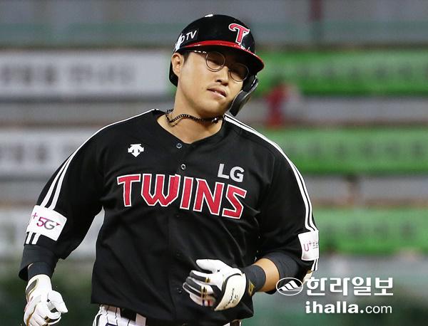 홈런 치고 베이스를 도는 LG 채은성.