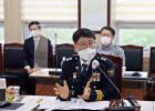 지난 24일 제주서부경찰서 노형지구대를 방문한 신임 이상률 제주경찰청장이 지구대 대원들과 기념촬영을 하고 있다. 제주경찰청 제공