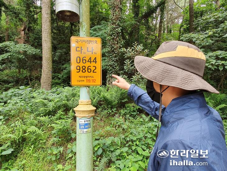 제주시는 조난 등 각종 안전사고 시 신고자의 위치를 정확히 안내하기 위해 설치된 국가지점번호판에 대해 일제 조사를 벌이고 있다. 사진=제주시