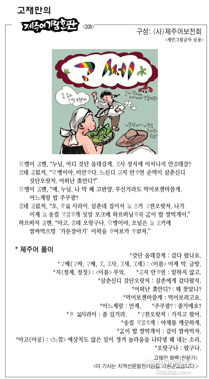 [고재만의 제주어기림혼판] 제주어 풀이(308)