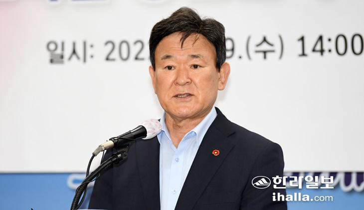 김광수 제주도교육감 당선인이 29일 제주도의회에서 역대 최대 규모로 편성된 교육청 추경안 편성 계획을 밝히고 있다. 이상국기자