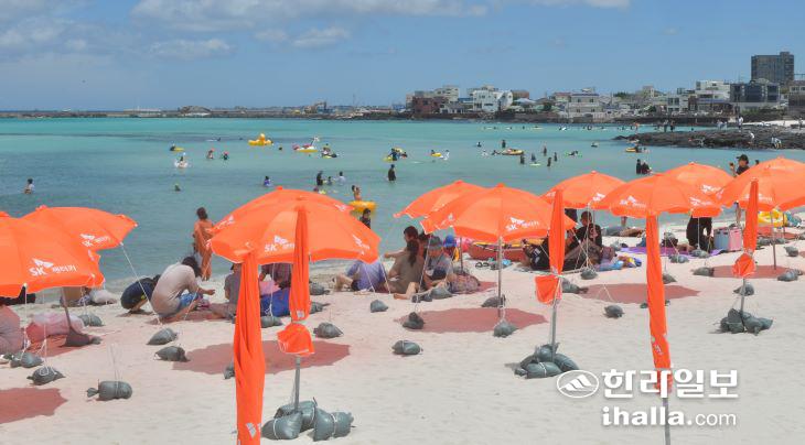 해수욕장 개장을 하루 앞둔 30일 제주시 협재해수욕장을 찾은 도민과 관광객들이 피서를 즐기고 있다. 이상국기자