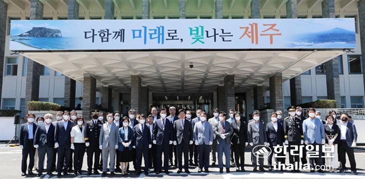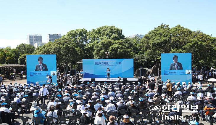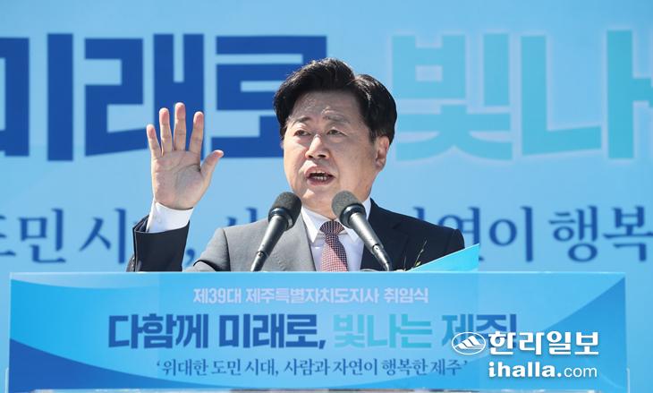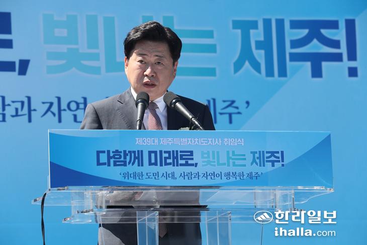 1일 오전 제주시 제주민속자연사박물관에서 열린 제39대 제주도지사 취임식에서 오영훈 제주도지사가 선서하고 있다.