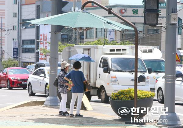 폭염 속 제주시내 거리 그늘막. 한라일보DB