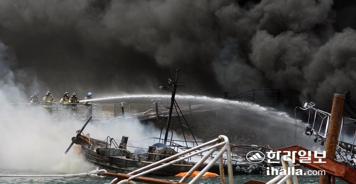 소방 대원들이 진압에 나서고 있는 모습. 이상국 기자