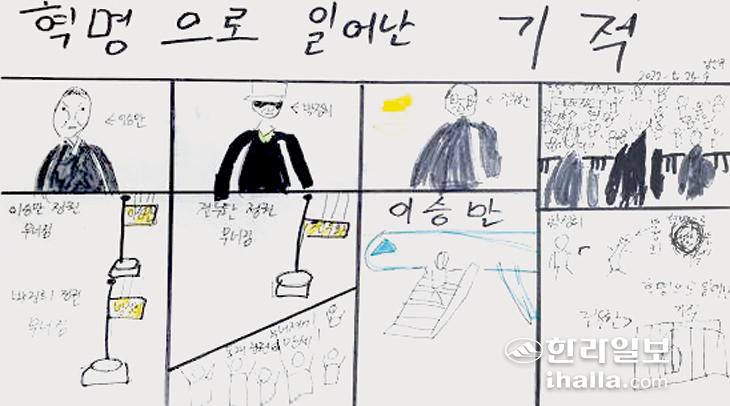 관련 책 읽고 뉴스 보며 민주화 혁명에 대해 알아보기'국가의 주인'에 대해 논의하고 배운 내용 만화로 정리