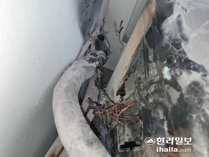 지난달 22일 서귀포시 안덕면 화순리에서 발생한 에어컨 연결부 화재. 제주소방