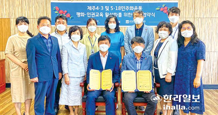 제주시교육지원청(교육장 강영철)과 광주광역시동부교육지원청(교육장 정낙주)은 6일 제주시교육지원청 제1회의실에서 '제주4·3평화·인권교육 및 5·18민주화운동교육 활성화를 위한 업무협약'을 체결했다.