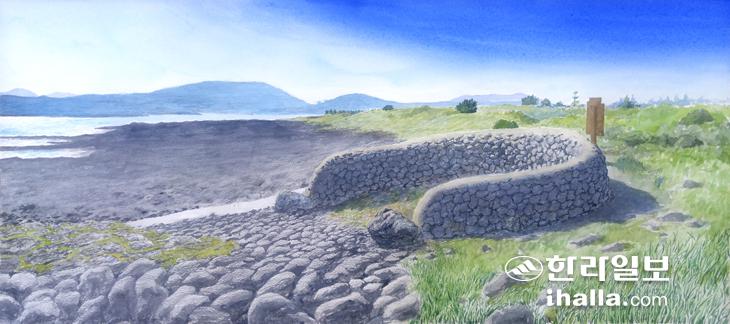 섭지코지에 오등애불턱<수채화 79cm×35cm>