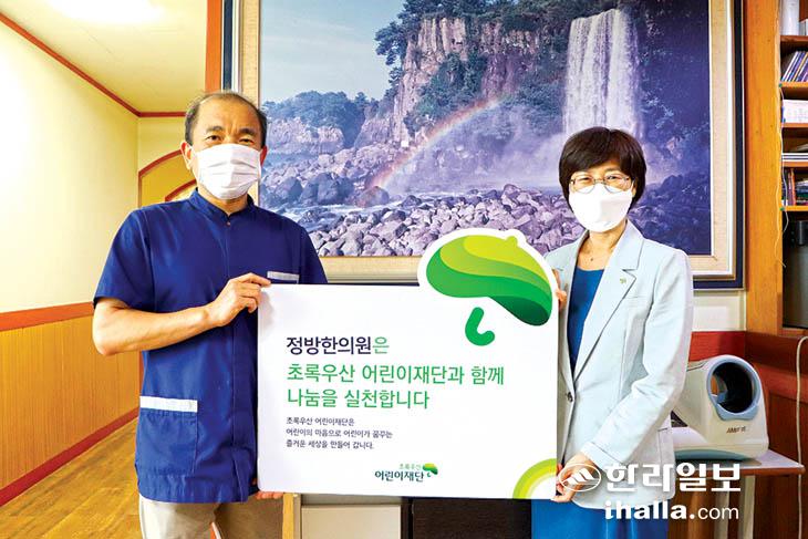 서귀포시 서귀동에 위치한 정방한의원(원장 이상기)은 지난 11일 초록우산 어린이재단 제주지역본부(본부장 박정숙)와 서귀포시후원회(회장 김미자)가 진행하고 있는 나눔 릴레이 캠페인에 동참했다.