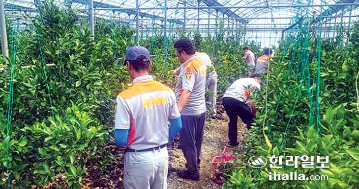 서부소방서 하귀남성의용소방대(대장 강동수)는 지난 10일 레드향 하우스 재배 농가를 방문해 가지 매달기 작업 등 농촌일손 돕기 봉사활동을 실시했다.