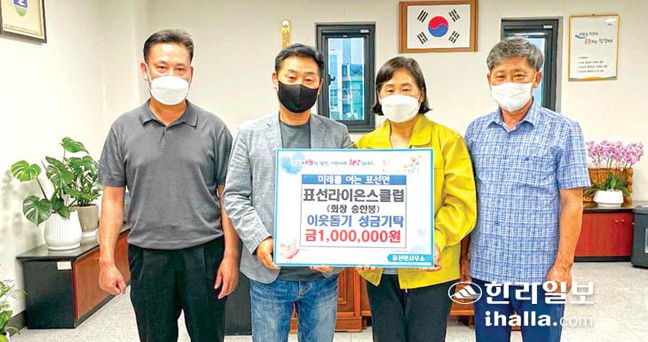 표선라이온스클럽(회장 송한봉)은 지난 11일 표선면 지역 내 어려운 이웃들을 위해 사용해달라며 서귀포시 표선면에 성금 100만원을 기탁했다.
