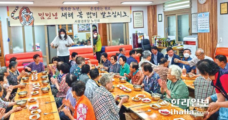 남서광마을회(회장 강순화)는 지난 11일 제주시 삼도1동 관내 서광경로당(회장 윤보현) 어르신들의 건강한 여름나기를 위해 닭죽을 제공했다.