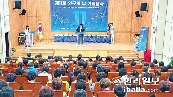 인구보건복지협회 제주지회(회장 고신관)와 제주도는 지난 11일 제주도 근로자종합복지관 대강당에서 '제11회 인구의 날' 기념행사를 개최, 저출산·고령사회 극복을 위해 힘쓴 단체, 개인 등에게 표창을 전달했다.