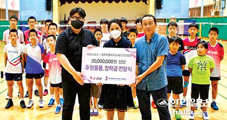 배드민턴 라켓, 셔틀콕 등을 해외생산 및 전국 유통망을 확보한 KBB스포츠는 지난 9일 제주동광초등학교에서 2000만원 상당의 현금과 물품 전달식을 가졌다.