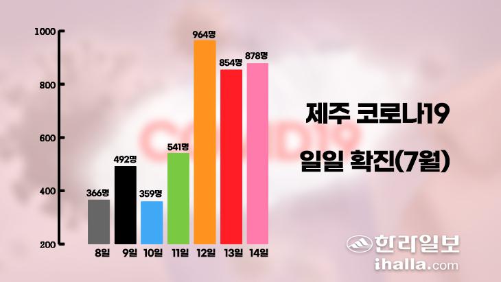 [한라일보] 지난 14일 제주지역 일일 코로나19 신규 확진자는 878명으로 집계됐다.