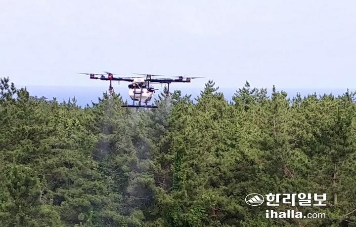 이번 작업은 지상 방제가 어려운 구좌읍 김녕리 일대 소나무림 44ha를 대상으로 이뤄진다. 7~8월 중 3회에 걸쳐 제주시에서 자체 운영하는 방제용 드론을 투입해 방제작업을 벌일 예정이다.