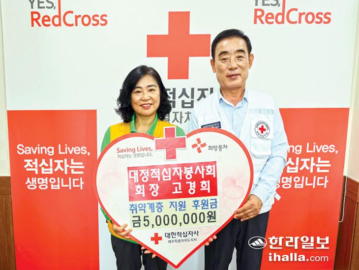 대정적십자봉사회 고경희 회장은 지난 15일 대한적십자사제주특별자치도지사(회장 오홍식)를 방문해 취약계층 지원 후원금 500만원을 전달했다. 이번 성금은 지역사회 이웃들과 온정을 나누고자 마련됐다.