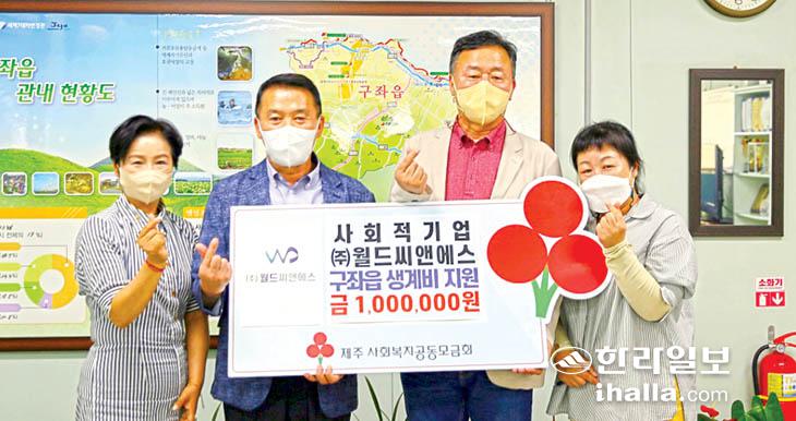 사회적기업 (주)월드씨앤에스(대표 김용광)는 지난 21일 제주시 구좌읍사무소에서 성금 100만원을 제주사회복지공동모금회(회장 강지언)에 기탁했다.