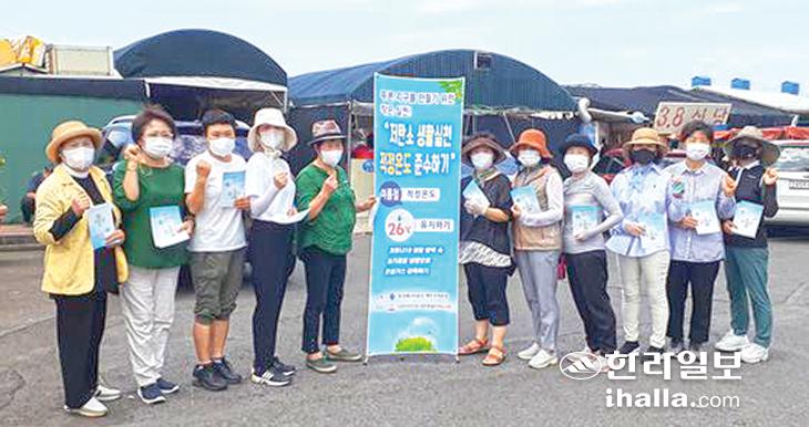(사)한국부인회제주특별자치도지부(지부장 고순생)는 지난 22일 제주시민속오일시장에서 저탄소 생활실천 적정온도 준수하기' 홍보 캠페인을 진행했다.