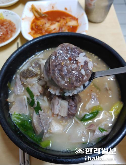 현경식당에선 순대국밥 한 그릇을 시켜도 푸짐하다. 뚝배기 가득 순대부터 내장, 머릿고기까지 넉넉하게 들어있다.