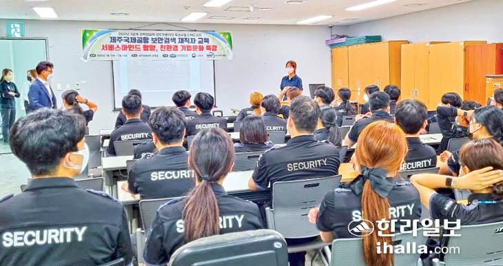 제주관광대학교(총장 김성규) 항공서비스과는 제주국제공항공사 보안검색직원 280명을 대상으로 지난 11일부터 14일까지 고객 불만사항 방지 차원 교육을 진행했다.