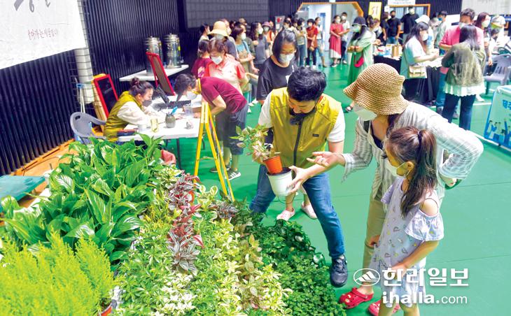 지난 달 30일 제주시 한라체육관을 찾은 많은 시민들이 제주 사회적경제 조직들이 만든 상품과 서비스를 구입하거나 현장에서 체험을 하고 있다. 이상국기자