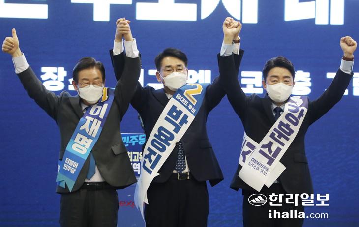 6일 열린 당 대표 첫 순회경선지역인 강원 대구 경북에선 이재명 후보가 권리당원 투표의 74.81%를 획득, 각각 20.31%, 4.88%에 그친 박용진 후보와 강훈식 후보를 압도적으로 제쳤다.
