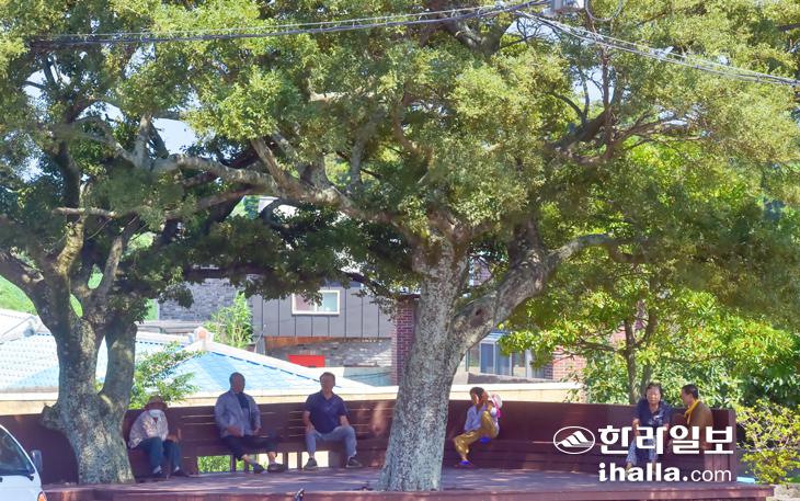 7일 제주시 애월읍 어음리 마을 주민들이 무더위를 피해 나무 그늘에서 담소를 나누며 휴식을 취하고 있다. 이상국기자