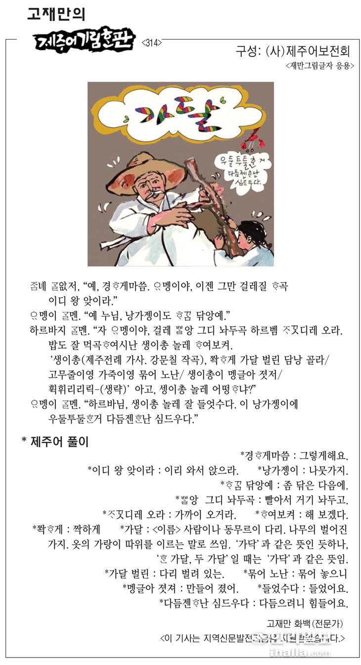 [고재만의 제주어기림혼판] 제주어 풀이(314)