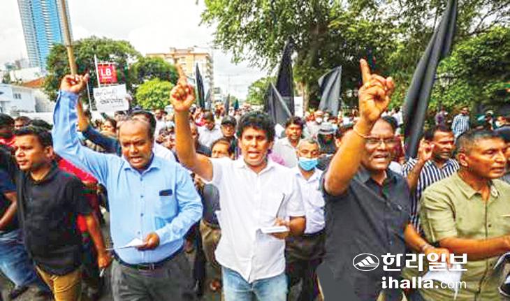 스리랑카 수도 콜롬보에서 행진하는 반정부 시위대. 연합뉴스