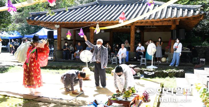 10일 제주시 구좌읍 송당본향당에서 송당 마불림제가 봉행되고 있다. 강희만기자